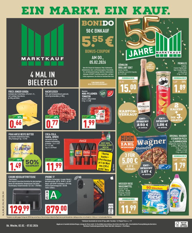 Unser JubiläumsBoniDo 🎉Wir feiern 55 Jahre Marktkauf.🥳 Wir schenken Dir am 05.02.2026 einen 5,55€ Bonus-Coupon…» Mehr erfahren